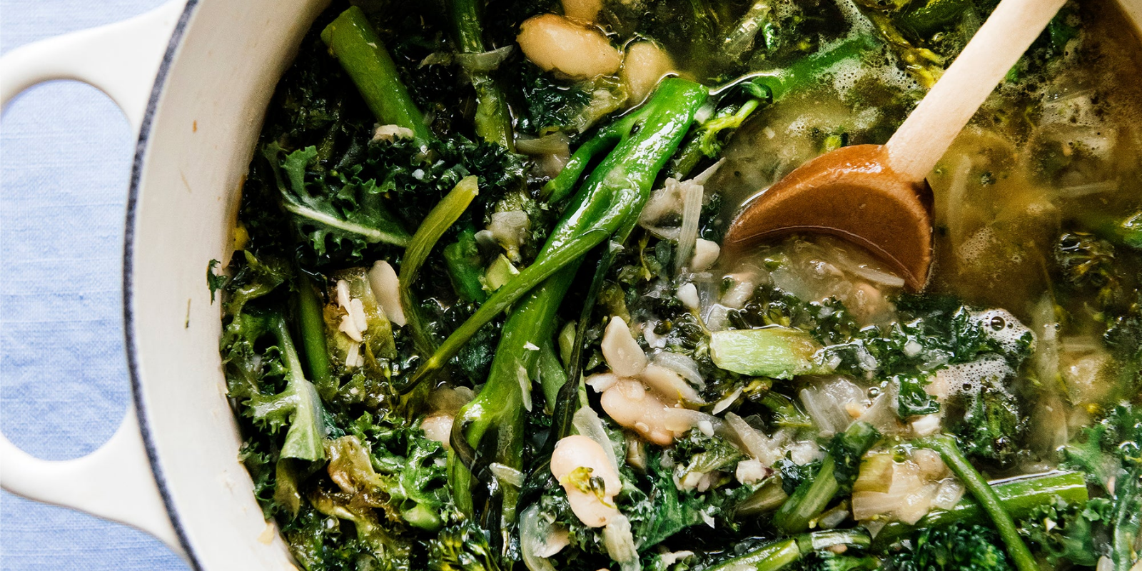 Tender broccolini and hearty greens simmered with Cassoulet beans in rich pot liquor. Simple, nourishing comfort food at its best.