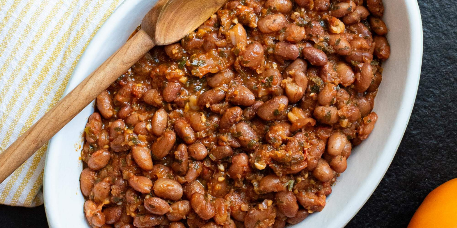 Creamy Mayocoba beans baked with feta, olives, capers, and winter citrus. A simple, hands-off dinner that's briny, fresh, and completely delicious.